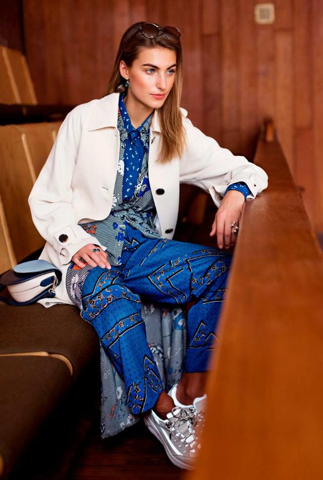 Forårets mode er et inspirerende miks af perfekte pasteller, skræddersyede suits og et vildt virvar af mønstre, farver og nomadiske lag-på-lag silhuetter i silke, der falder blødt som let sommeregn. En unik blanding, hvor 90ernes hiphop-scene med chunky sneakers møder 60'ernes parisisk kunstner-boheme med halsklud og blomsterprint. Det perfekte setup i jagten på den unikke sammensatte stil – og den pefekte kontrast til Lyngby Rådhus’ snorlige funktionalistiske arkitektur.